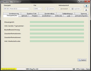 | Wie lauten die Meldungen in WBH-Diag? Statuszeile? Siehe Bilder im Anhang. Einmal der Audi 100 bei dem es Probleme gibt... einmal ein Audi Cabrio Typ 89... Das läuft! Anderen Bluetooth-Adapter probieren. Anderen Laptop. Anderes Auto. Anderen Laptop... Ja hab ja jetzt schon nen neuen xD Anderen Blue... |