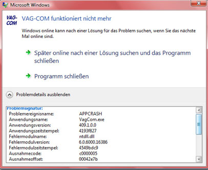 Ansonten kommt immer, wirklich immer die folgende Fehlermeldung (VAG-COM_funzt_nicht). :wall: