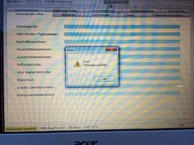 Wähle ich den Auto Mode, sucht er das Steuergerät, aber dann kommt der Fehler "Error Verbindungsfehler"