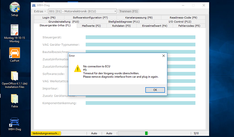 Selbst mit der WBH-Diag Pro bekomme ich keine Verbindung zu mein Fabia STG hin.