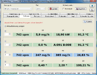 .... zumindest mechanisch .... hier kommt nun Problem 1 : jetzt müßte ich den dynamischen Förderbeginn korrekt einstellen .... zu dieser Jahreszeit (Außentemperaturen) sicher nicht absolut exakt möglich aber zumindest näherungsweise würde mich schon zufriedenstellen ..... hier beginnt aber das Problem .... obwohl ich mich wirklich bemüht habe Informationen von überall her zusammenzutragen (vielen Dank an dieser Stelle an Tante Google...) ist es mir leider nicht gelungen eine wirklich "belastbare" Aussage zur Vorgehensweise per WBH-Diag zu finden - für VCDS gibts ungefähr zigtrillionen Beiträge inklusive youtube Anleitungen in allen erdenklichen Formen ..... und mangels einer Datenbank über die "gebräuchlichsten Steuergeräte" die ich hier im Forum zu finden gehofft hatte, sind die Zahlen die mir WBH-Diag auswirft auch keine wirklich große Hilfe.