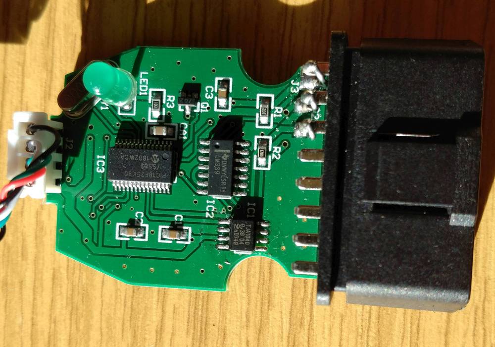 Wen es interessiert, hier die Funktionsweise des K509. Im Groben und Ganzen ist das Kabel wie viele andere "einfache" (günstige) Diagnosekabel aufgebaut, bestehend aus dem USB zu Seriell Wandler (FT232) und dem LM339 zur Pegelanpassung. Außerdem ist für die CAN Funktionalität (bisher nicht geprüft) der PIC18F25K80 und der TJA1040 zuständig. Der FT232 bildet die Schnittstelle zwischen Diagnoseprogramm und KFZ.