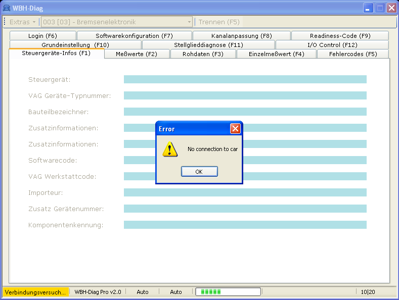 Eine Frage zu wbh-Diag Pro 2.0 über USB an einem Laptop mit der Diagnosesoftware wbh-diag 1.30.